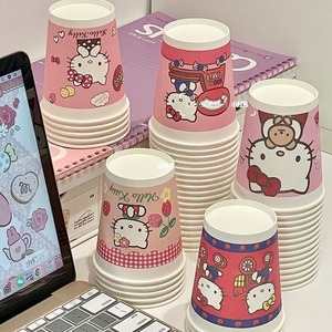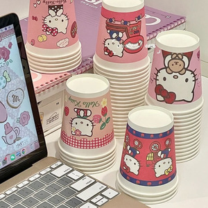 小红书同款kt猫可爱纸杯节日家用聚会加厚高颜值彩色纸杯水杯批发