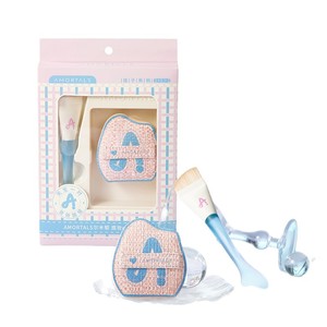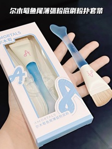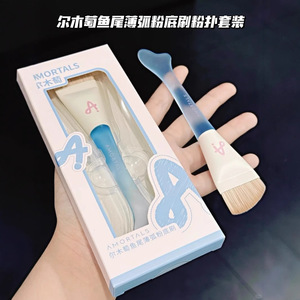 Ermutao フィッシュテール 薄型アークファンデーションブラシ パフセット リキッドファンデーションパフ CP メイクブラシ