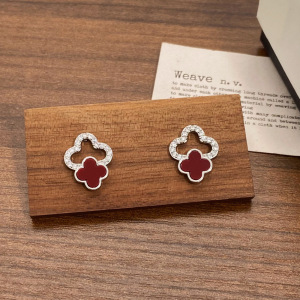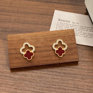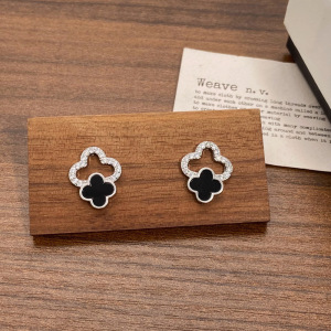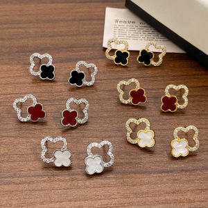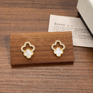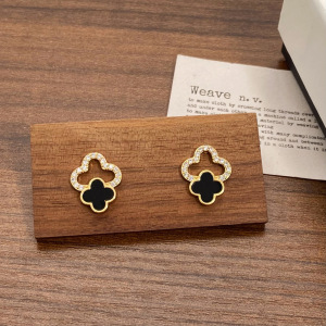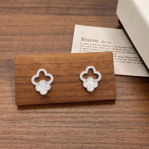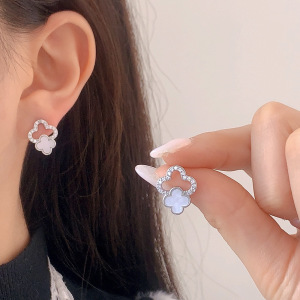 新款镶钻镂空幸运四叶花耳钉独特设计感简约通勤小众高级感耳环女