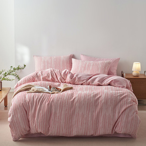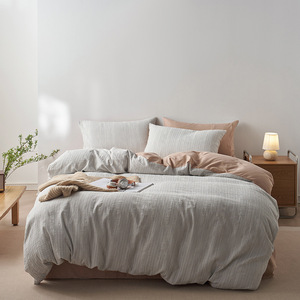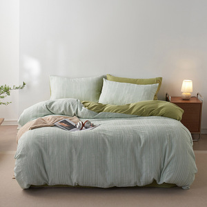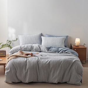 北欧 シンプル コットン ウォッシュドコットン ベッド4点セット 純綿ストライプ 掛け布団カバー ベッドシーツ ボックスシーツ 寝具3点セット