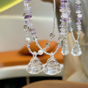 天然水晶项链佛公净体透明锁骨链平安时尚女士吊坠白水晶项链批发