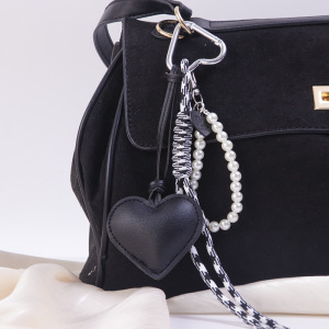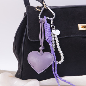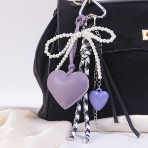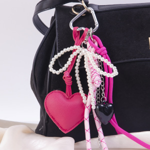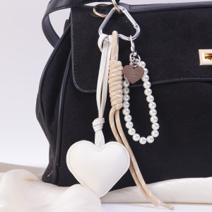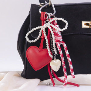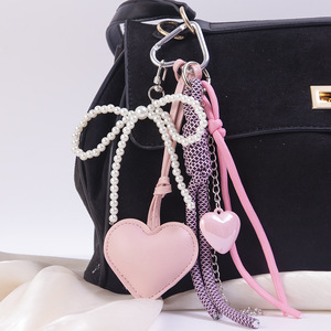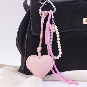 クロスボーダー革ストラップピーチハートバッグペンダントハート型キーホルダーパールチェーンリボン携帯電話チェーン diy