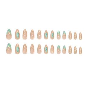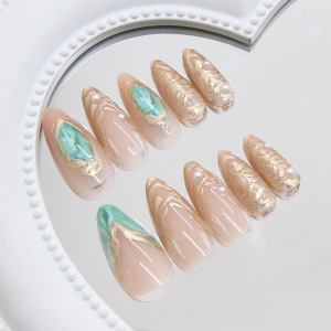 立体的な不規則な金メッキフレンチオーロラ流砂パールヨーロッパとアメリカンスタイルの取り外し可能なウェアラブルネイル24個