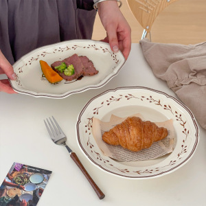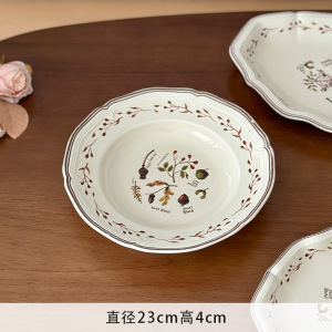 穆尼 法式复古餐盘好看的餐具陶瓷深盘汤盘鱼盘甜品点心盘意面盘