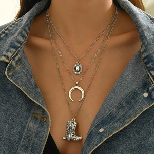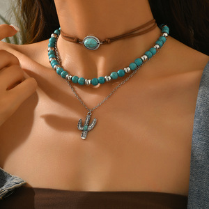 国境を越えた売れ筋のヨーロッパとアメリカのウエスタンカウボーイスタイルのネックレスセットレトロな牛頭ターコイズベルベット帽子ネックロープ鎖骨チェーン