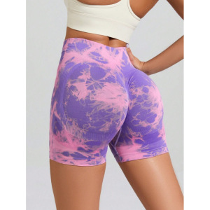 ヨーロッパとアメリカの国境を越えた新しいシームレスな絞り染めカラーブロックヨガショーツハイウエストヒップリフティングアウトドアスポーツタイツショーツ女性用