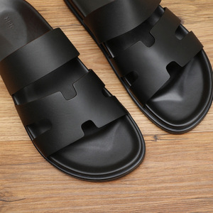 2025真皮新款二舅拖鞋厚底男士外夏季休闲时尚一字外穿平底魔术