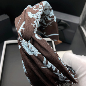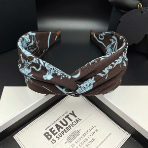 欧美风时尚印花发卡发箍女高颅顶成人百搭咖色宽边压发洗脸头箍