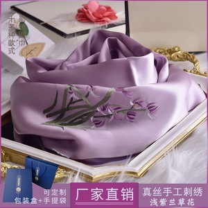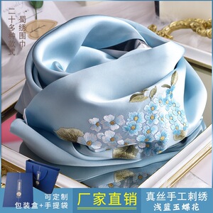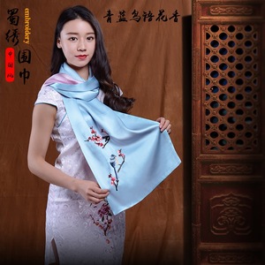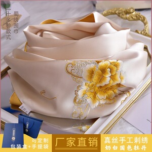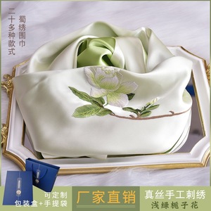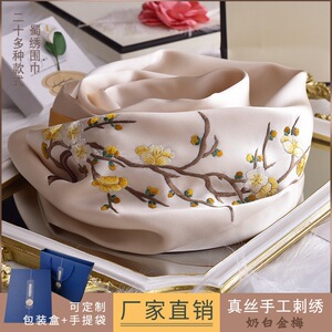 蜀绣手工刺绣桑蚕丝围巾礼品中国特色礼品送老外出国礼物外事礼品