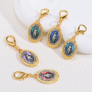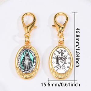 クロスボーダー temu 合金オイルドリップレトロ聖母マリアペンダント DIY ネックレスブレスレットキーホルダーアクセサリー