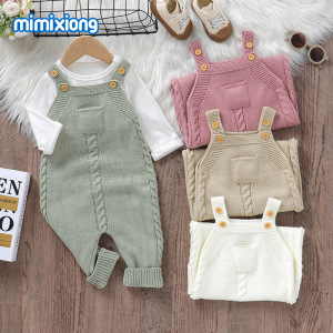 春と秋の新作ベビーサスペンダーニットワンピースロンパース