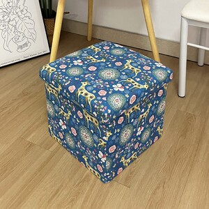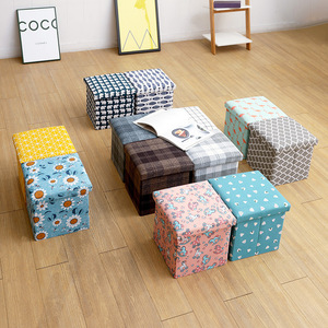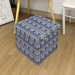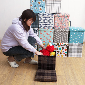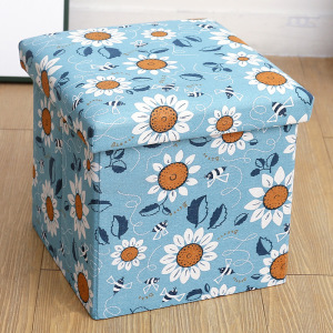 布製の綿とリネンのプリント収納スツール、衣類収納ボックス、厚みがあり、大人が座ることができる折りたたみ雑貨おもちゃ収納スツール