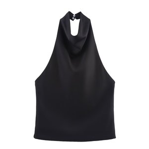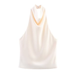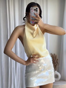 ヨーロッパとアメリカの貿易卸売 2025 夏の新しい女性のシルクサテンの質感のファッショナブルなホルターネックトップ女性用