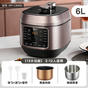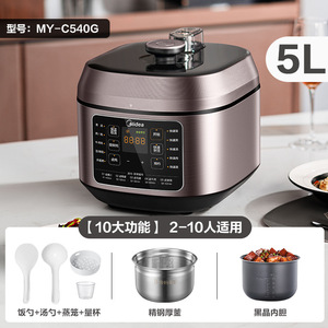 美的电压力锅家用0涂层5L智能高压饭煲不锈钢双胆多功能电高压锅