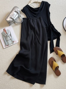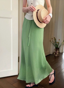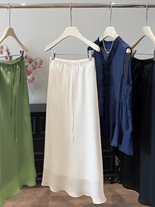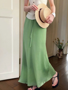 韓国スタイルの弾性ウエスト巾着テンセルスカート女性の夏の新しい多用途痩身ミッドレングスストレートヒップスカート