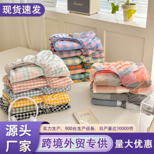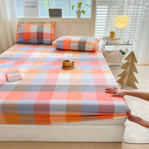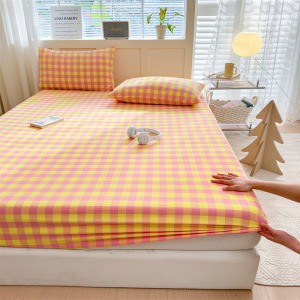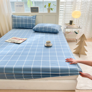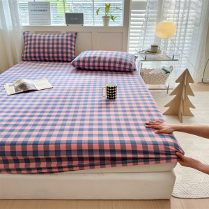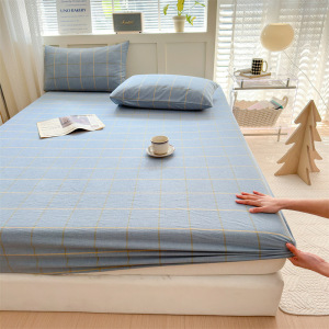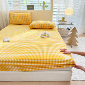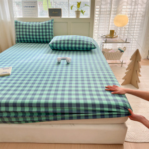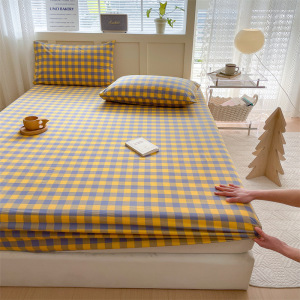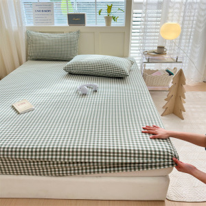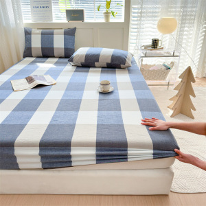綿先染めチェック柄ウォッシュコットンボックスシーツシングルピース100純綿オールインクルーシブベッドシーツシングルベッドカバーマットレスプロテクター夏