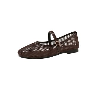 女性のためのメッシュ中空通気性シングルシューズ 2025 春と夏の新しいフラットソールマタニティソフトソールワンラインバックルビーニーおばあちゃんの靴