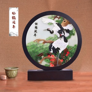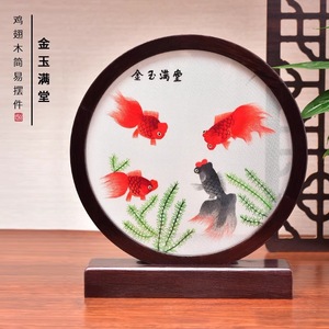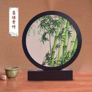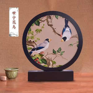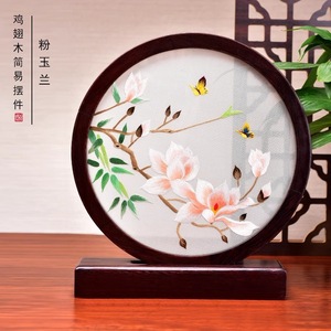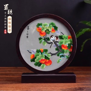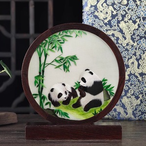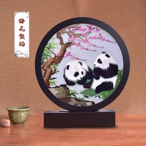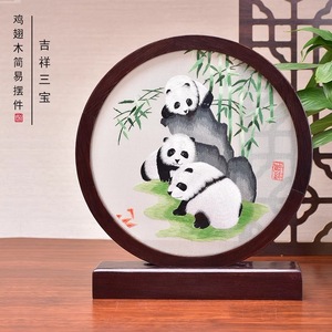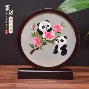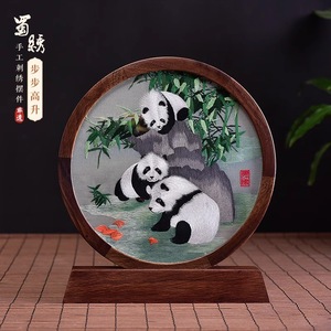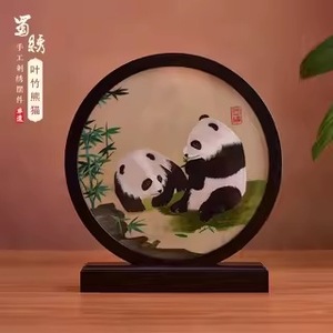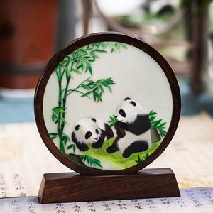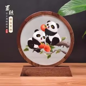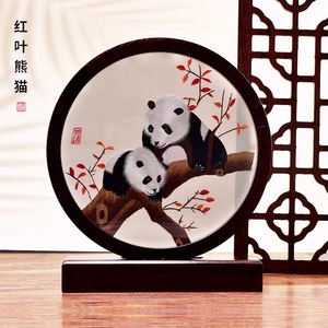 蜀绣双面手工绣摆件熊猫屏风紫光檀成都纪念品送老外送领导可刻字