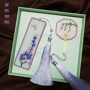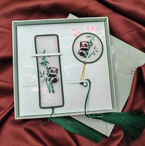 四川刺繍しおり2点セット、手刺繍ギフトボックス、文化的で創造的なギフトボックス、海外ギフトの特徴、シルクのお土産