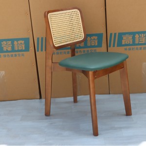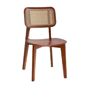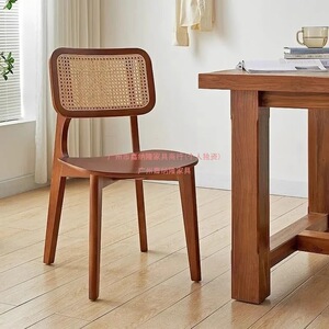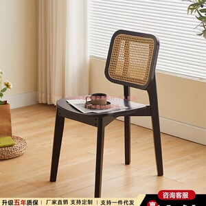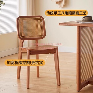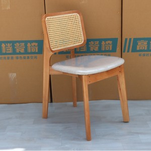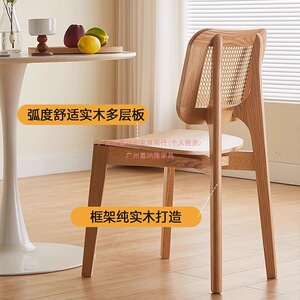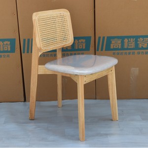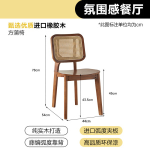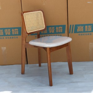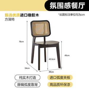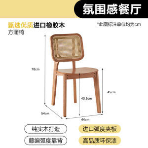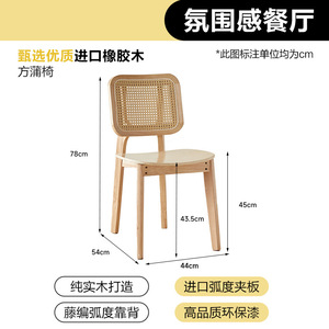 北欧实木餐椅家用客厅藤编靠背椅田园方蒲椅设计师餐厅实木椅子