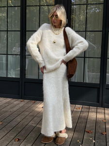 跨境套头毛衣半身裙套装欧美2025秋冬Ins风针织两件套毛衣套装女