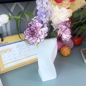 厂家批发红色喜庆装饰花瓶仿陶瓷塑料花瓶新年摆件吹塑一体成型