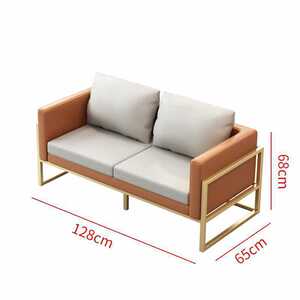 ダブルソファ(オレンジ+オフホワイト、輸入シーレザー)