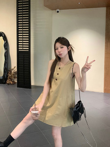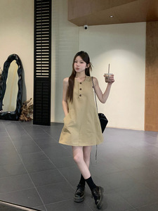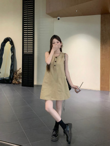 2025夏季新款复古工装无袖背心连衣裙小个子高级感宽松A字短裙女