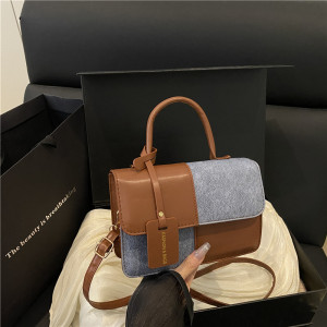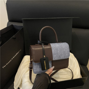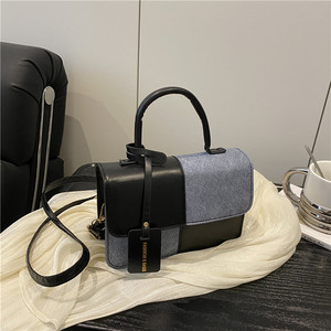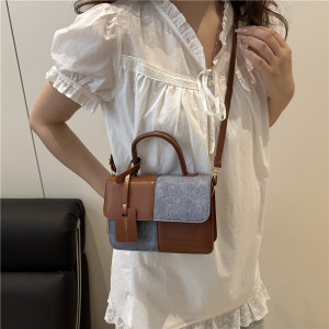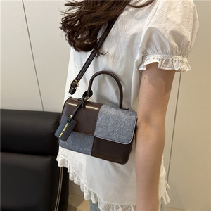 时尚撞色简约手提包2025夏季新款洋气潮流行小方包复古单肩斜挎包