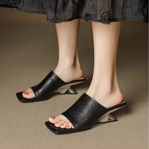 小个子方头气质异形跟凉拖鞋2025夏季新款外穿法式配裙高跟凉拖鞋