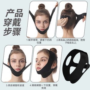 ソースファクトリー ダークブラック 通気性のあるエクストラロング V フェイス包帯 フェイシャルスキンを引き締める スリーピング包帯 在庫あり