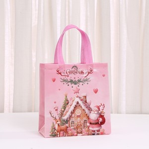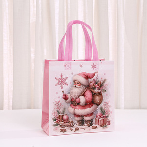 圣诞老人无纺布袋礼品礼物手提袋加粗加厚粉色覆膜包装袋礼品袋