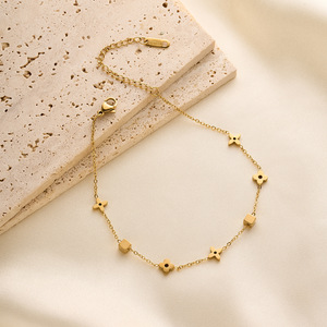 Wenjian ニッチデザイン四つ葉の花スクエアチタン鋼ブレスレット 18K ゴールドライト高級スタイル非退色女性のクロスボーダーブレスレット