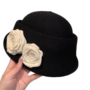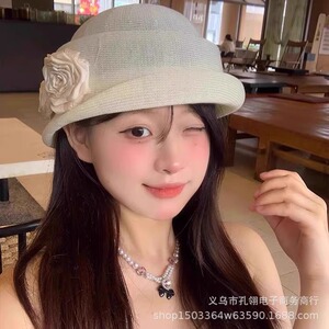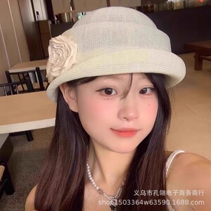 韩系千金风山茶花卷边盆帽女士夏季薄款法式赫本风礼帽亚麻画家帽