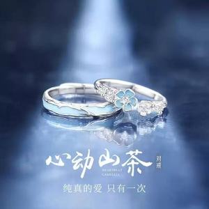 純銀 999 ハートビート カメリア カップル リング 女性と男性用、軽くて豪華なニッチデザインのペアリング、バレンタインデーのギフト
