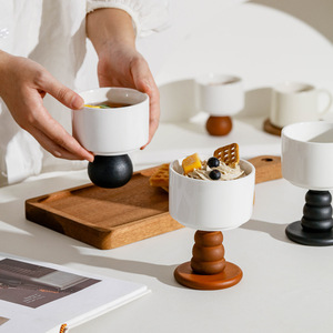 フレンチゴブレットインカップ家庭用プディングカップデザートボウルレトロアイスクリームアイスクリームカップ木製キャンドルカップ
