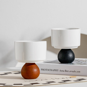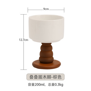 光沢のある白いゴブレット - 木製の足が積み重ねられた円 (茶色)