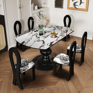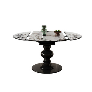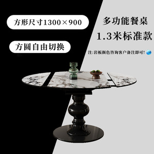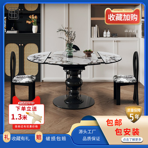 フレンチレトロ伸縮式バゲリ岩板ダイニングテーブル可変ラウンドテーブル2025新しい微結晶石無垢材のダイニングテーブルと椅子