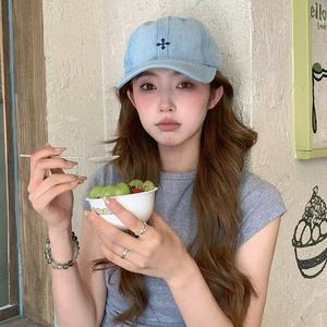 韓国風クロスベースボールキャップレディースイントレンド万能デニムひさしキャップ小顔小頭帽子