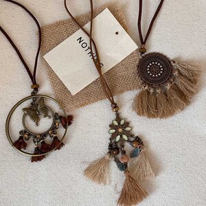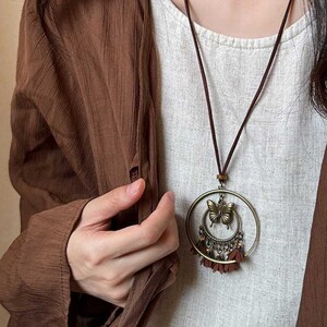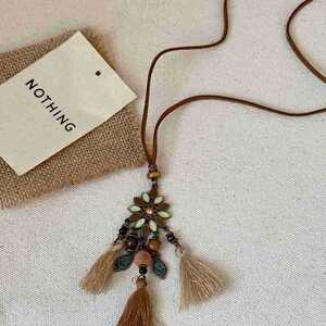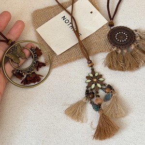 ボヘミアンコーヒー色のレトロな蝶ペンダントタッセルネックレスレディースエスニックスタイルファッション多用途セーターチェーンアクセサリー