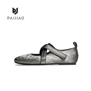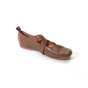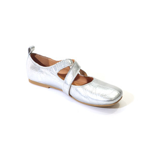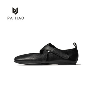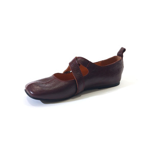 フレンチレザーダイアフラットスクエアトゥレトロ本革フラットバレエレディースシンプルメリージェーンシューズZH696-1