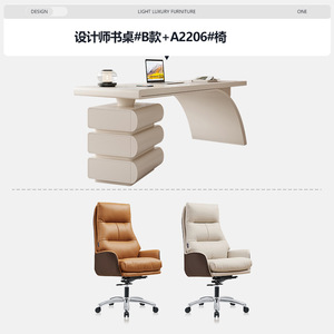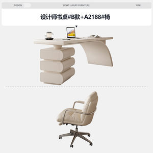 奶油风书桌#B款+高级椅*1