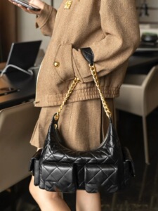 新しい 25C マルチポケットレディースバッグショルダーバイクバッグチェーンスモールフレグランスホーボーヒッピーバッグ脇の下バッグハンドバッグ