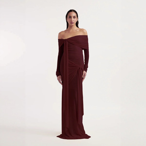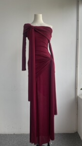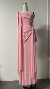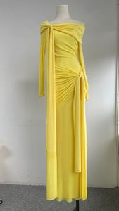 スポットニッチデザインストリーマーイエロースプライシングワンショルダーレディスタイルドレス女性用プリーツ痩身ロングスカート
