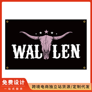 跨境旗帜外贸背景布旗帜定 制出口挂毯TEMU3*5FT西部粉色公牛头骨
