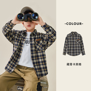 男の子の純綿シャツ、ハンサムな春と秋のトレンディなメンズレトロチェック柄シャツ | 子供用ルーズシルエットカジュアルジャケット