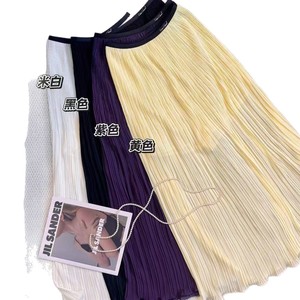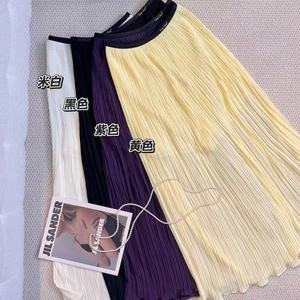 ハイエンドのヘビープリーツメッシュスカート 2025 夏の新しいハイウエストスリムドレープジョーゼットスカート女性用