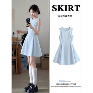 ミルクブルーのノースリーブドレスの品質アップグレード/柔らかい生地
