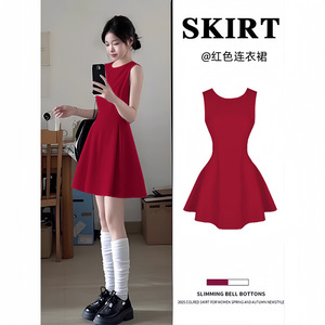 レッドノースリーブドレス品質アップグレード/柔らかい生地