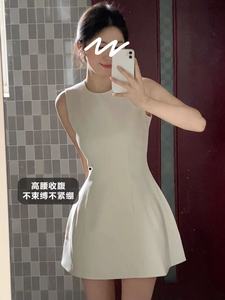 ウエストシェイプAラインノースリーブワンピース レディース 夏 2025新作 フレンチスタイル 小柄さん向けワンピース フレンチ風リトルブラックドレス